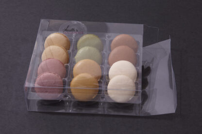 Die Vanille-Macarons werden mit großartigen Madagaskar-Vanille Bio Schotten verarbeitet, die viele Stunden in kalter Sahne ruhen. Die handgefertigte flüssige Karamelmasse ist mit französischer salzhaltiger Butter und hält die genaue Balance zwischen süß und bitter.